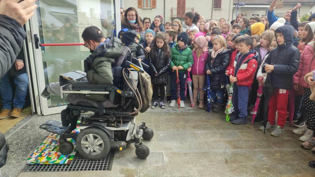 C’erano anche le Autorità, il Sindaco di Mese Paolo Cipriani, il Dirigente della Scuola primaria Francesco La Vecchia, i rappresentanti dell’Associazione il Quadrifoglio: il Presidente Giuseppe Dell’Ava, Vilma e Sergio Petruzio, Mariose Marinoni, la collaboratrice Alda Fedeli, i rappresentanti della Coop. Nisida Gusmeroli Silvano, Dell’Anna Clemente, Cinzia Tangredi, Elisa Copes. Infine ha partecipato anche il gruppo del CSE La Fenice di Mese. Insomma c’era proprio tanta gente. Quando mi hanno invitata a provare la pedana con la mia carrozzina, racconta Debora Petruzio, mi sono commossa tantissimo per la contentezza. Clementina Ciapusci, ha sperimentato con successo la pedana con il deambulatore, ricorda di essersi molto emozionata. Anche Loris Marinoni era felice di varcare la soglia tutto sorridente. E’ stata poi la volta di Mattia Antonelli che è passato con la sua carrozzina turbo fuori serie. Quando Stefano Bini ha aperto l’inaugurazione è stata una grande soddisfazione, gli facciamo i nostri complimenti e lo ringraziamo per l’iniziativa che agevolerà il passaggio di tutti.